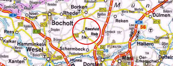 Raesfeld gehört zum Kreis Borken im westlichen Münsterland, liegt ca. 30 km nördlich des Ruhrgebietes und ca. 80 km süd-westlich von Münster. Die Gemeinde hat inzwischen über 11.000 Einwohner.